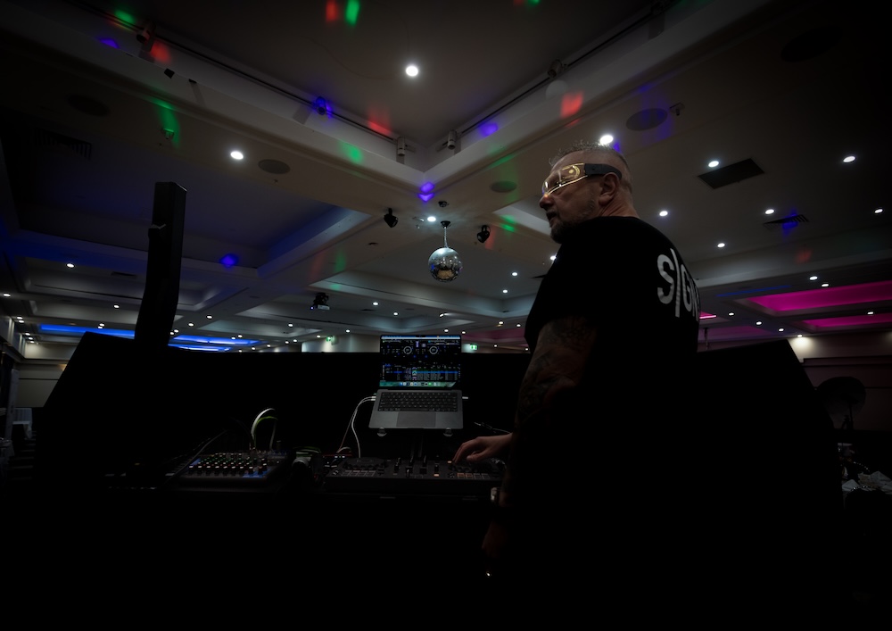 Lighting and atmosphere are just as important as the music. Using a DMX lighting workflow driven by the WolfMix W1 controller, DJ Signal can synchronise lighting scenes with the energy of the music — from subtle ambience during arrivals and networking, through to full dance‑floor energy when the party opens up.